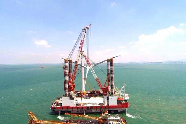 此次安裝完成的最后一臺風(fēng)機采用風(fēng)輪整體吊裝的方式,最大的難點(diǎn)為發(fā)電機需要單獨吊裝,同時(shí)還要專(zhuān)用吊具配合,以保證發(fā)電機與豎直面成6度的傾角,這對吊裝提出很高的要求。中鐵大橋局克服了施工當中海上季風(fēng)等惡劣自然條件的影響,安全優(yōu)質(zhì)地完成了吊裝。